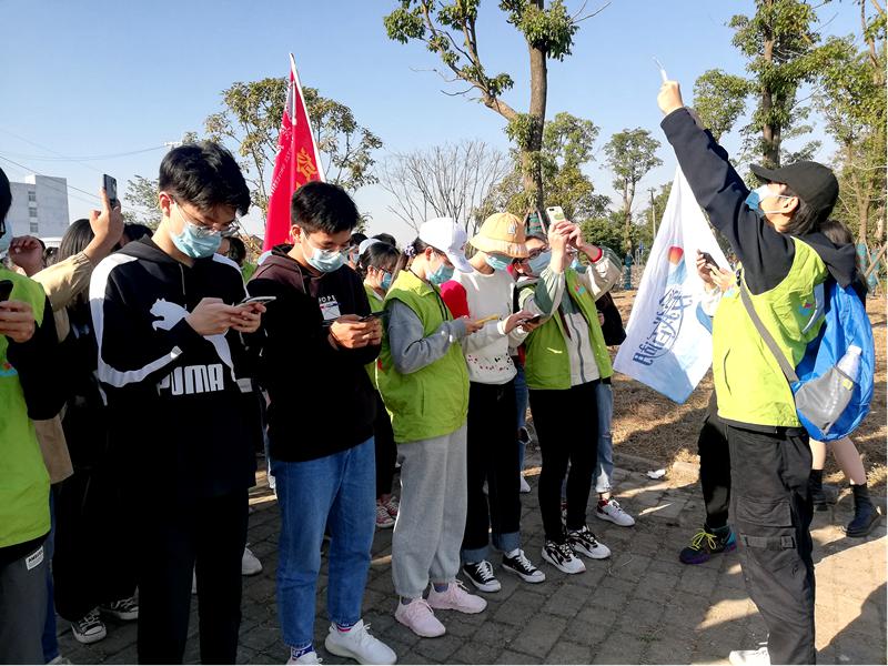 阳光明媚,湖面波光粼粼。长江大学常青生态志愿者协会的志愿者们在后官湖公园集合,开始巡湖直播。协会工作人员向志愿者们介绍:“如果大家在巡河湖的过程中发现任何问题,有三种方式反映,一是拨打公示牌上官方河湖长的电话;二是在河湖保护你我同行App反映;三是直接与协会联系。”