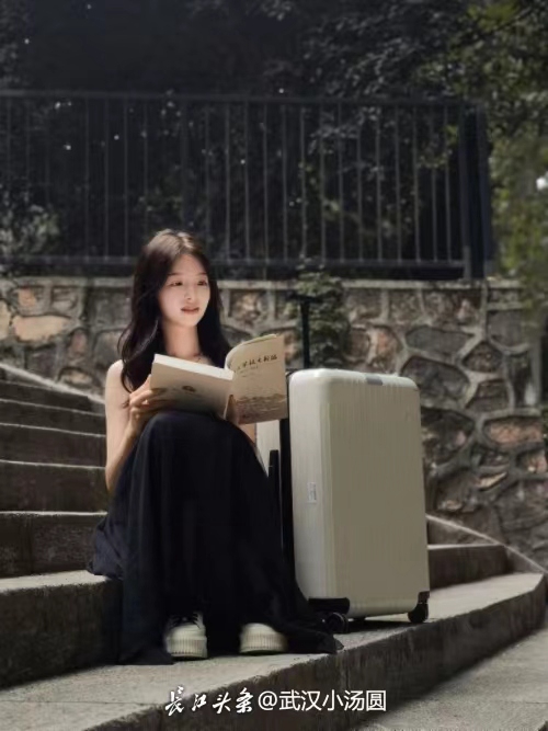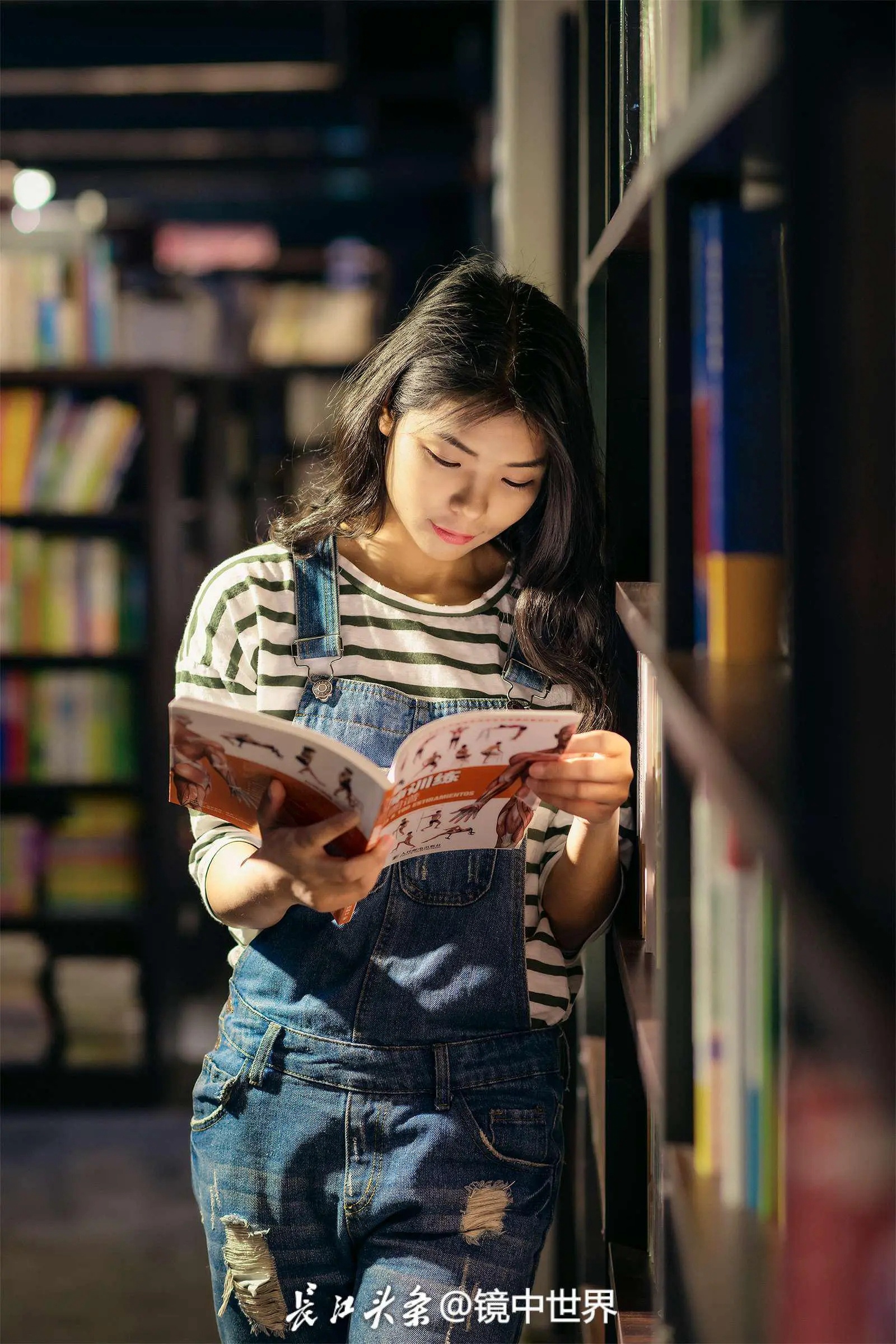 在武汉汉街文华书店的二楼,遇见一位“邻家女孩”。长江头条@镜中世界 摄