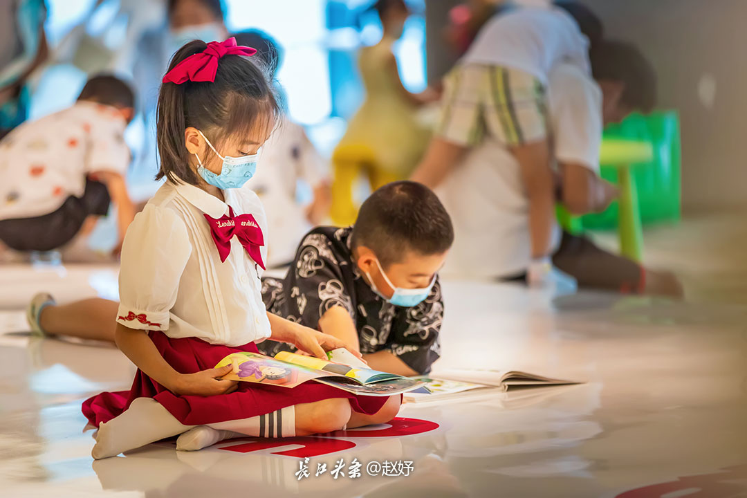 小朋友们在青山区图书馆(新馆)感受阅读的乐趣。长江头条@赵妤 摄