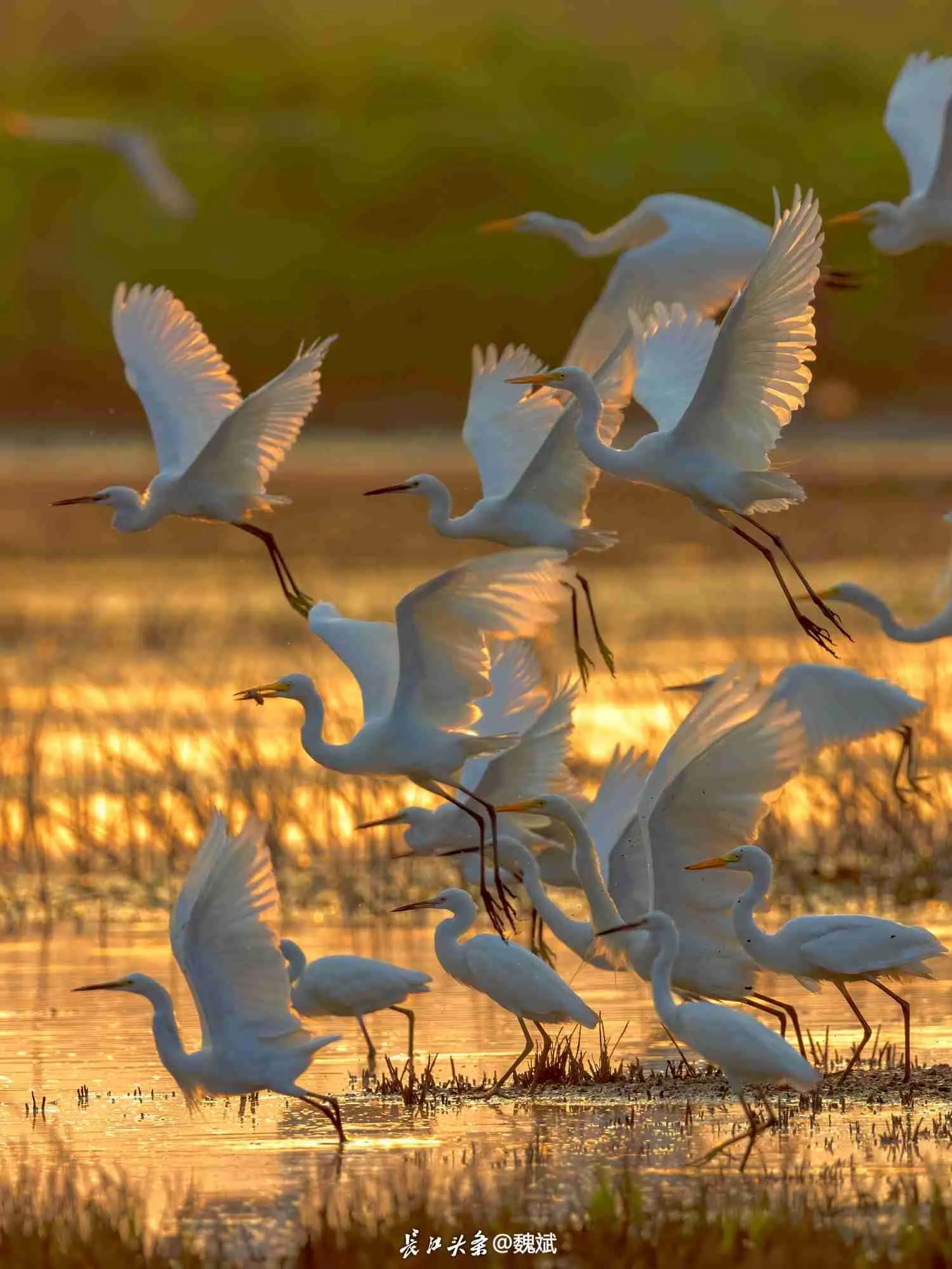 府河夏日,鹭类聚群。晨曦下的觅食与欢愉,呈现生机与灵动的光影。长江头条@魏斌 摄