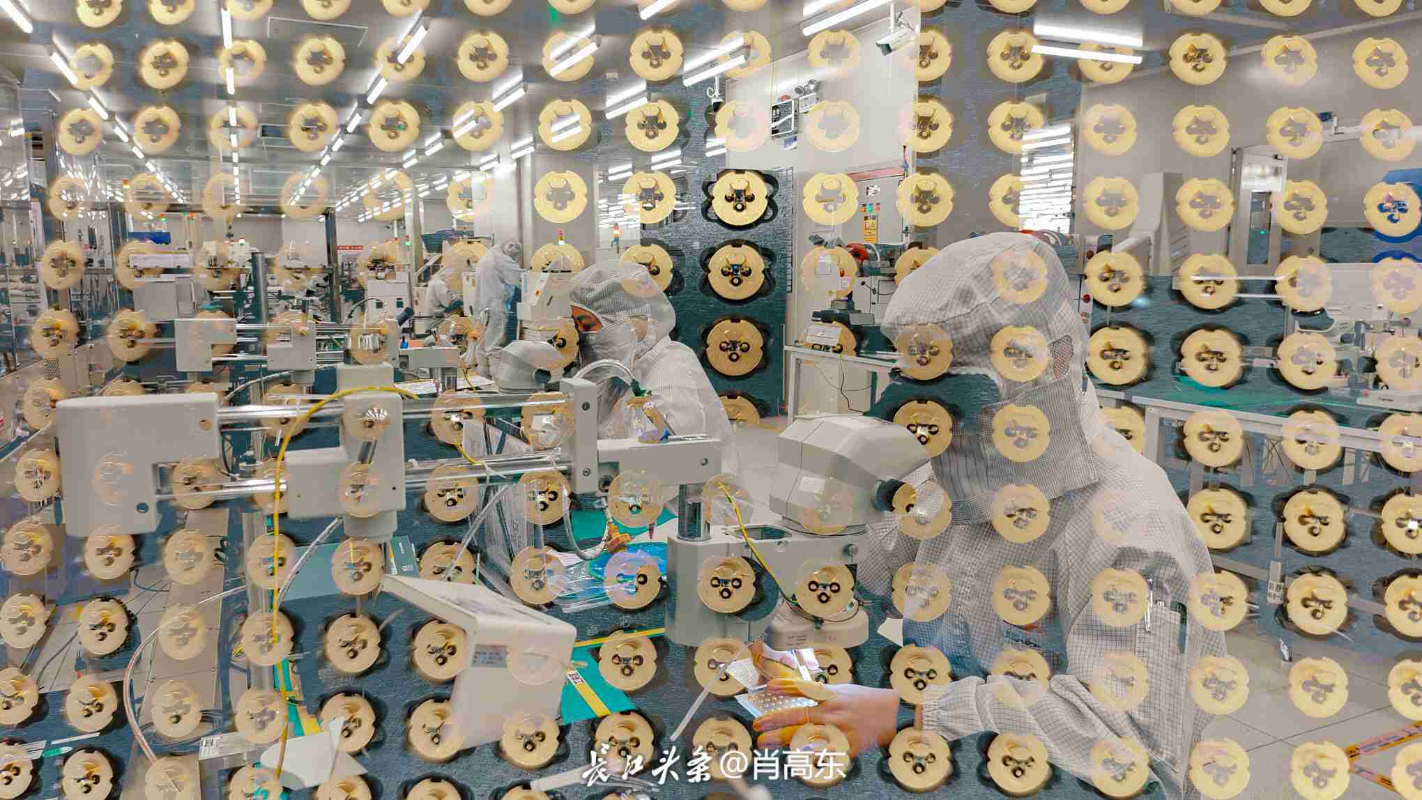 武汉光迅科技股份有限公司的科研人员正在一丝不苟的工作。长江头条@肖高东 摄