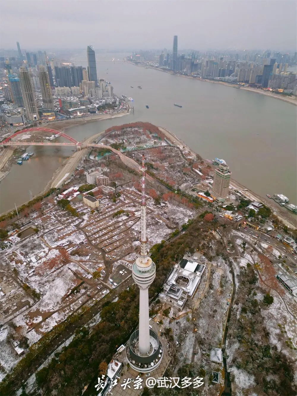 长江与汉水在南岸嘴龟山电视塔旁交相辉映。长江头条@武汉多多 摄