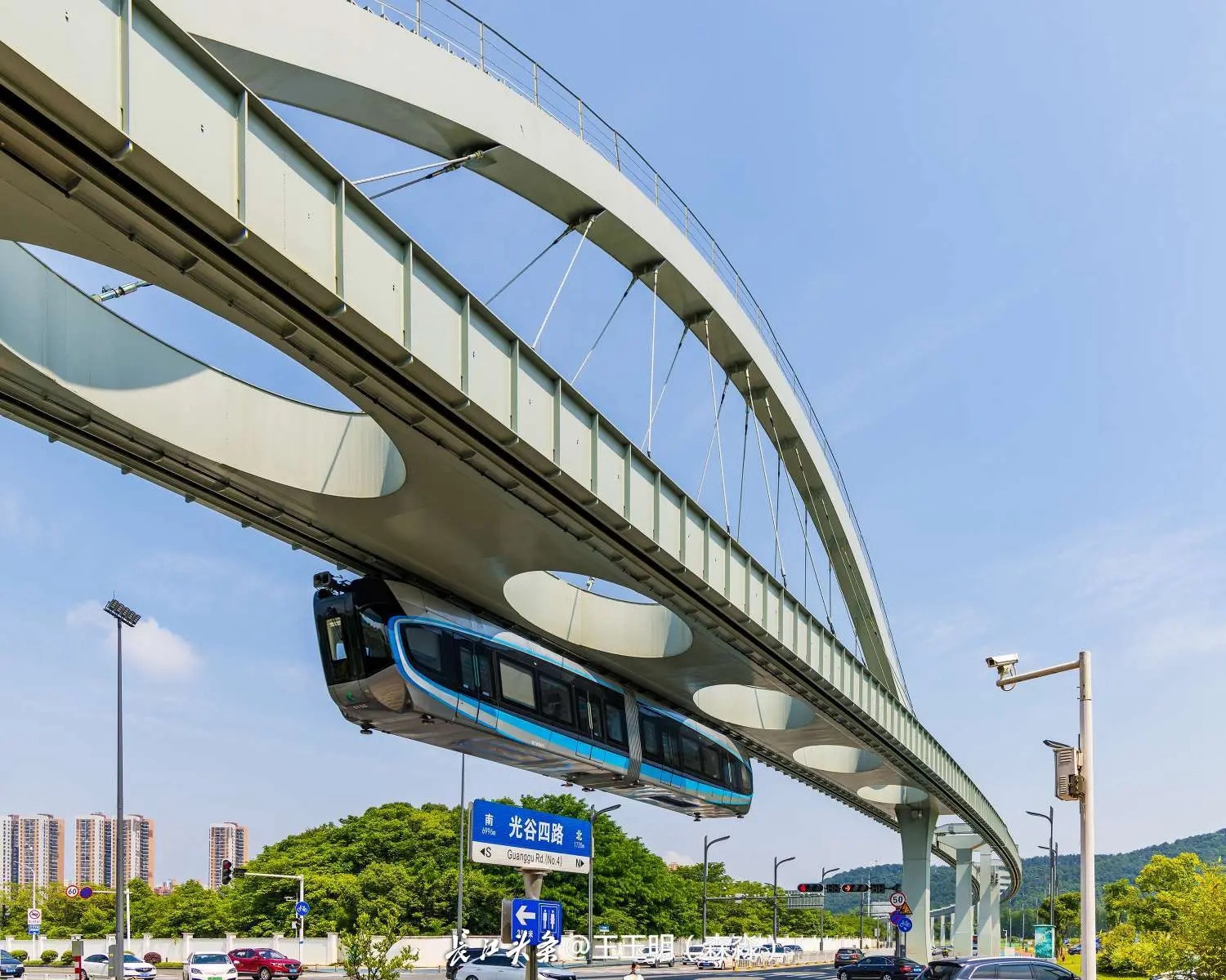 国内首条悬挂式空中轨道列车“光谷光子号”,已在武汉光谷运行。长江头条@王玉明 摄