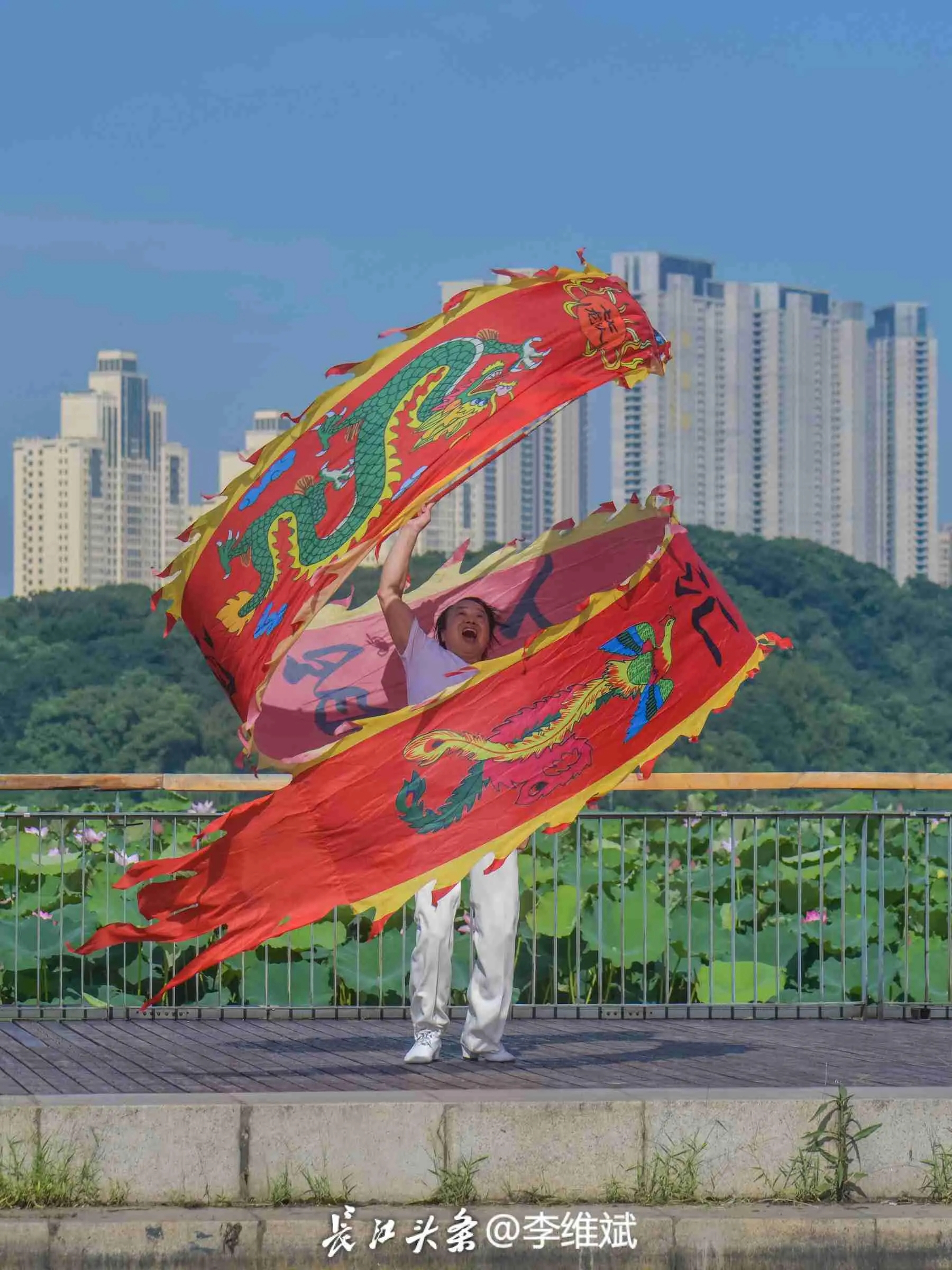 在月湖公园欣赏汉阳舞龙队表演。长江头条@李维斌 摄