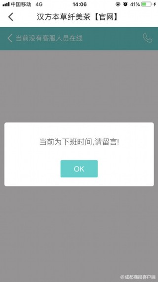 当住院后,刘芳怀疑是减肥茶有问题,随向客服人员反映自己入院的事情。客服人员回复称,已把她的情况向领导反映,请她安心等待医院检查结果。除此之外,并没有其他的处理方案,事后刘芳多次联系对方,再无回应。同时,令刘芳感到蹊跷的是,官网的在线客服也已暂停服务了。