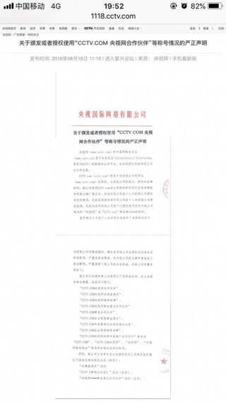 不过,记者在央视网上查询到,在2012年,中央电视台广告经营管理中心曾发布过一份关于从未颁布“央视上榜品牌”等称号的声明,2016年,央视国际网络公司发出关于颁发或者授权使用“cctv.com央视网合作伙伴”等称号情况的严正声明,两份声明中表示未授权“央视网”或“cctv.com”等品牌,未授权第三方使用cctv.com央视网推荐品牌、品牌年度推广合作伙伴等称号,也未颁发cctv央视品牌、宣传品牌等称谓。