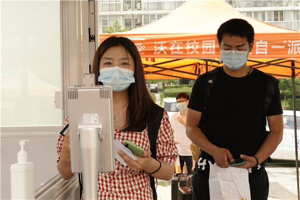 “同学们进宿舍以后,一定要先通风。收拾好个人物品,抓紧时间办理毕业手续,注意合理安排时间。”宿舍楼前,辅导员们一边向毕业生们讲解注意事项,一边发放“防疫爱心包”,引导大家再次登记信息、测量体温。
