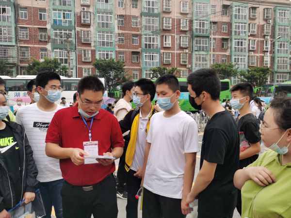 长江网7月20日讯(记者陈晓彤)7月20日,黄陂区实验中学九(8)班班主任刘伟早早到达考场,为学生们送考。“必须为孩子们站好这班岗!”疫情防控期间,刘伟从大年三十就投入到社区防控工作中,为发热病人测量体温、排查“五类人员”、社区消杀,为居民送药、买菜……他坚守志愿服务岗位100多天。复学复课后,他回到校园,和学生们一起备战中考。