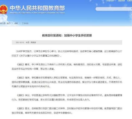 日前,教育部办公厅印发了《关于加强中小学生手机管理工作的通知》,其中强调:中小学生原则上不得将个人手机带入校园。确有需求的,须经家长同意、书面提出申请,进校后应将手机由学校统一保管,禁止带入课堂。老师不得使用手机布置作业或要求学生利用手机完成作业。