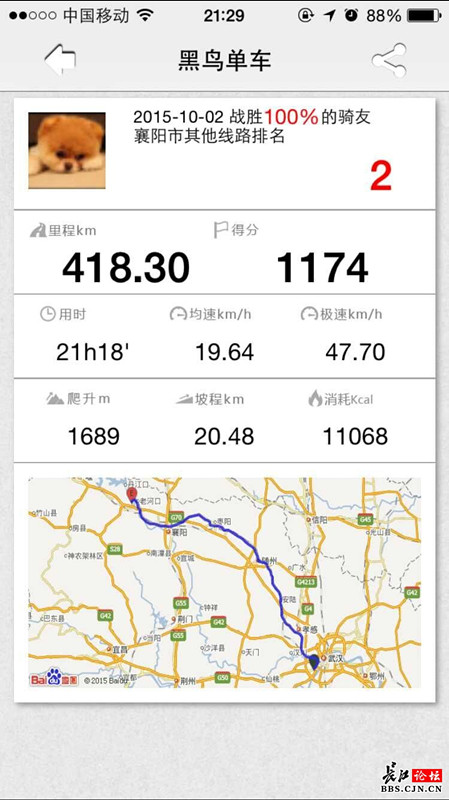 “10月1日从武汉出发,骑了差不多200公里,在随洲住宿,10月2日一早从随洲出发,晚上5点多到达老河口的老家,实际骑行时间21小时多,共骑行418公里”谈起自己的国庆单车探亲之旅,李先生除了感觉有点累外,还有满满的自豪,因为这是他的第一次单车探亲之旅。
